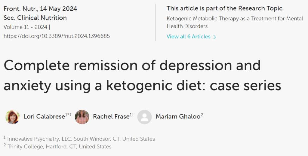 Lori Calabrese, MD, is a Hopkins and Harvard-trained psychiatrist specializing in metabolic psychiatry, a Clinical Advisor to Metabolic Mind, and an invited speaker for Nutrition Network. She offers novel advanced treatments for psychiatric conditions at our clinic, Innovative Psychiatry, at 1330 Sullivan Avenue, South Windsor, CT. Her Metabolic Psychiatry practice offers a multidisciplinary team and a comprehensive treatment path with ketogenic and low-carb interventions through Touchpoints 180TM, a comprehensive program which aims to set a new standard of care in psychiatry. For more information, call 860.648.9755 or contact us.